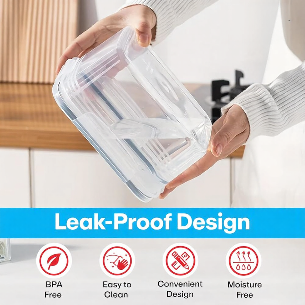 Each container features a locking lid with an airtight silicone ring, which helps seal in freshness while preventing air and moisture from entering. This airtight design keeps food crisp for longer, reduces spoilage, and prevents odors from spreading inside your refrigerator. Whether you store cut fruits, leafy greens, or whole vegetables, your food stays fresh and ready to use.