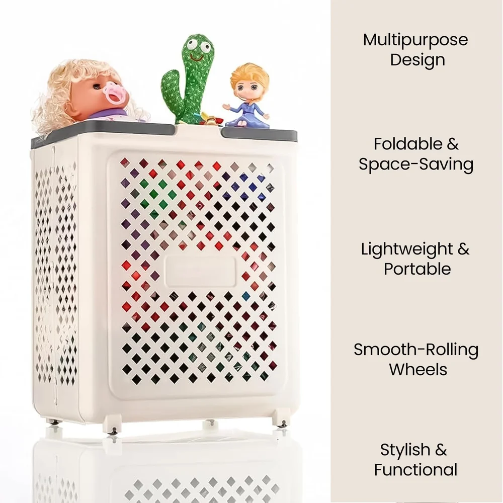 Aspiral Multipurpose Foldable Laundry Basket with Wheels and Handles - Space-Saving Clothes Storage Basket for Home (45 Liter Capacity)